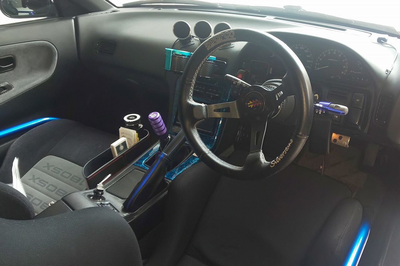助手席シートも後期に交換してあります。ダッシュボード、内張類の程度も良好です。改造車買取専門CPSでは180SX、シルビア、チェイサー、マーク2、クレスタなどのドリフト仕様の改造車を多く査定、買取しています。北海道から沖縄県まで全国無料で出張査定を行っておりますので、チューニングカー、ドレスアップカーの改造車の売却をご検討されている方がいましたら、お気軽にお問合せ下さい♪