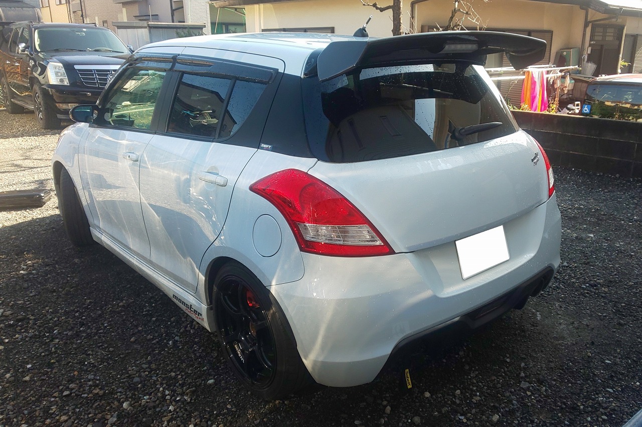 H24年式 スイフトスポーツ(ZC32S) 6速マニュアル 走行9.5万㎞H24年式スイフトスポーツ(ZC32S)6速マニュアルの改造車です。エンジン関係はフジツボのマフラーに交換しTMスクエアのCPUで制御してあります。足回りはタナベ車高調、アドバンホイールなどが装着されていました。内装はバケットシート、ステアリング、追加メーターなどの社外パーツが組んであり、このまま楽しくスポーツ走行の楽しめる車に仕上げてあります。スイフトスポーツは改造内容により査定額が大きく変わるスポーツカーになります。今回も社外パーツをプラス査定し買取できました。