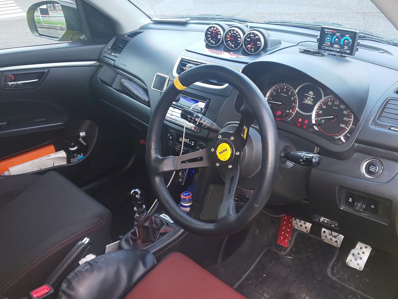 デフィ追加メーター、MOMOステアリングなど装着してあります。改造車買取専門CPSではスイフトスポーツなどのコンパクトスポーツカーの改造車を高価買取しています。北海道から沖縄県まで全国無料で出張査定を行っておりますので、チューニングカー、ドレスアップカーの改造車の売却をご検討されている方がいましたら、お気軽にお問合せ下さい♪
