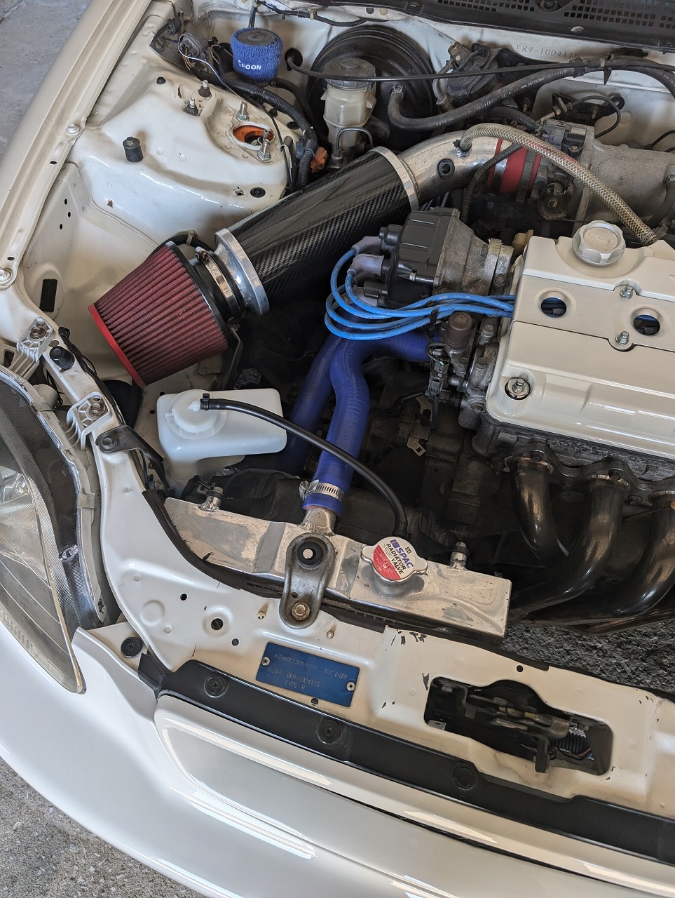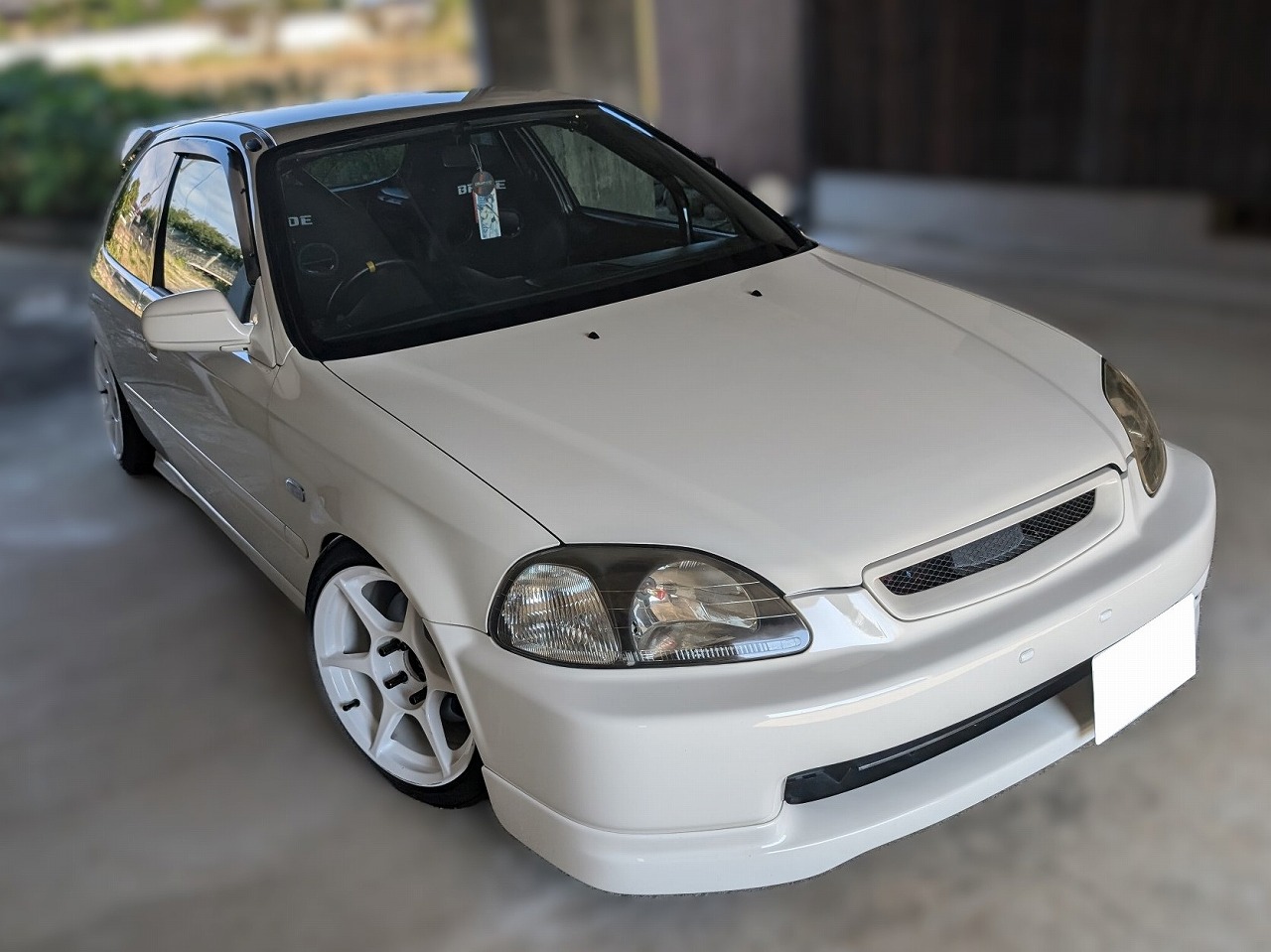 H9年式 シビック(EK9) タイプR 5速マニュアル 走行25.7万㎞H9年式シビック(EK9)のカスタムカーです。エンジン関係は20万㎞時にオーバーホール済みエンジンに乗せ換え、吸排気チューンが施されています。足回りはゼロファイターの車高調、アーム類を組んであり、P1レーシングのホイールを履いています。走行距離が25.7万㎞でエアコンレス車ですが、内外装、機関をしっかり仕上げてある改造車のため、カスタムしてある価値をプラス査定して買取しました。