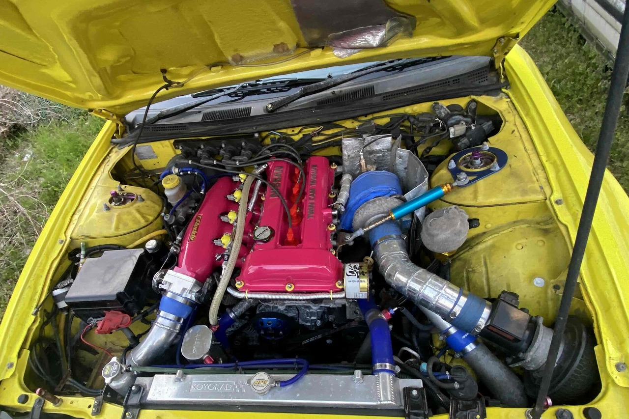 SR20ターボエンジン換装/TD06-20Gタービン/東名ハイカム/トラストサージタンク/コーヨーラジエター/トラストオイルクーラー/Z32エアフロ/パワーFC/ニスモクラッチ/RB25ミッション/東名LSD/D-MAX車高調/イケヤテンションロッド/イケヤタイロッド/イケヤタイロッドエンド/ユラモードナックル/スキッドレーシングリヤアーム/ECR33キャリパー/クスコロールバー/オリジンエアロ/D-MAXフロントフェンダー/オリジンリヤフェンダー/社外ボンネット/社外ウイング/追加メーター/社外バケットシート/ニスモ280メーター