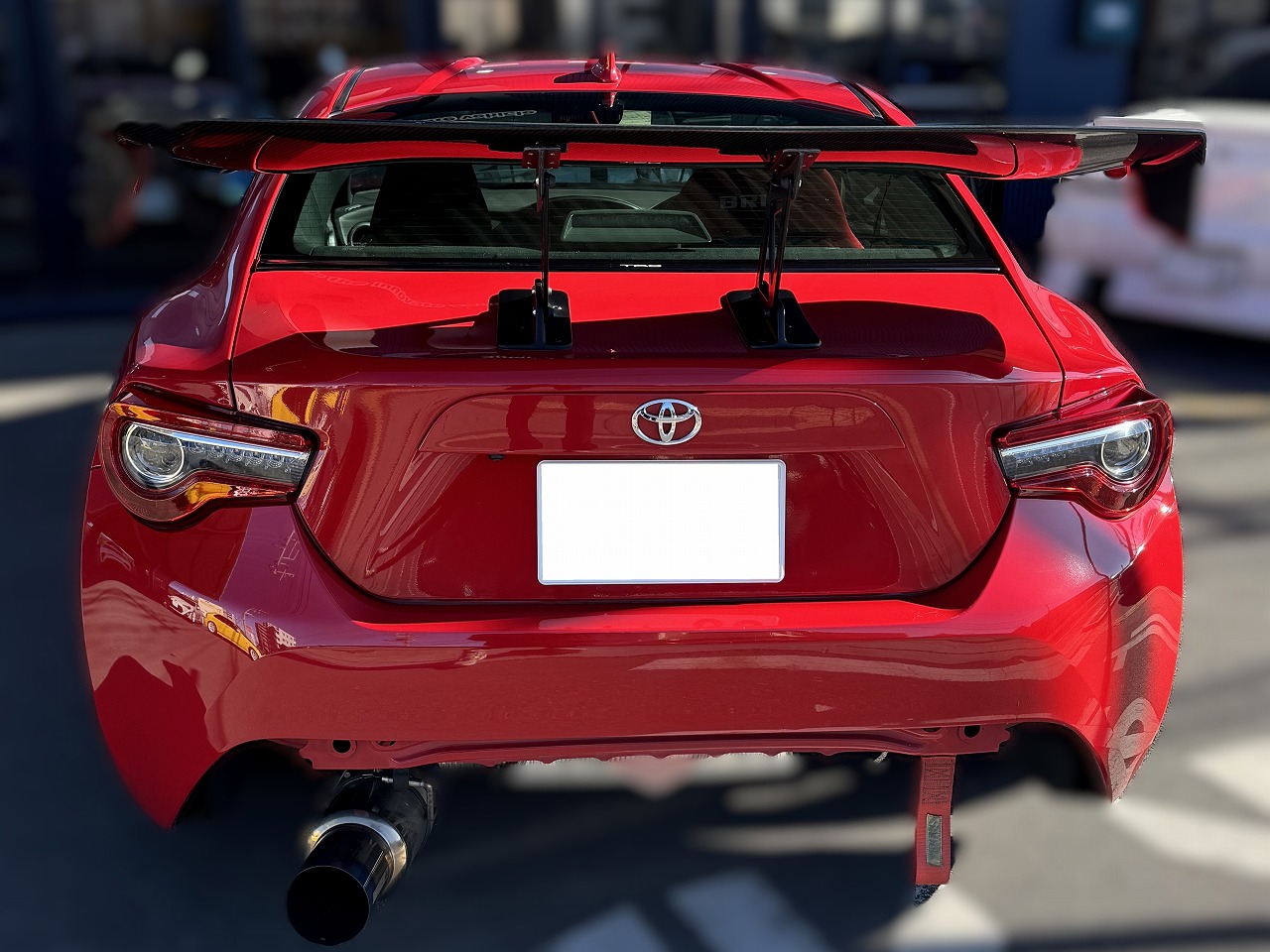 R1年式 86(ZN6) GT 6速マニュアル 走行4.3万㎞R1年式、86、GTのマニュアル車をベースにした改造車です。エンジン関係はアペックスのエアクリ、HKSのエキマニ&キャタライザー、東名のマフラーなどに交換してあり、足回りはブリッツの車高調が組んであります。外装はバリスのフロントバンパー、サイドステップ、ボルテックスのGTウイング、カーボンボンネット、アドバンGTホイールなどでドレスアップしてあり、内装にはMOMOのステアリング、ブリッドのバケットシート、IRPのショートシフターなどが組んであります。全体的にスポーティな雰囲気に仕上げてある改造車のため高価買取できました。