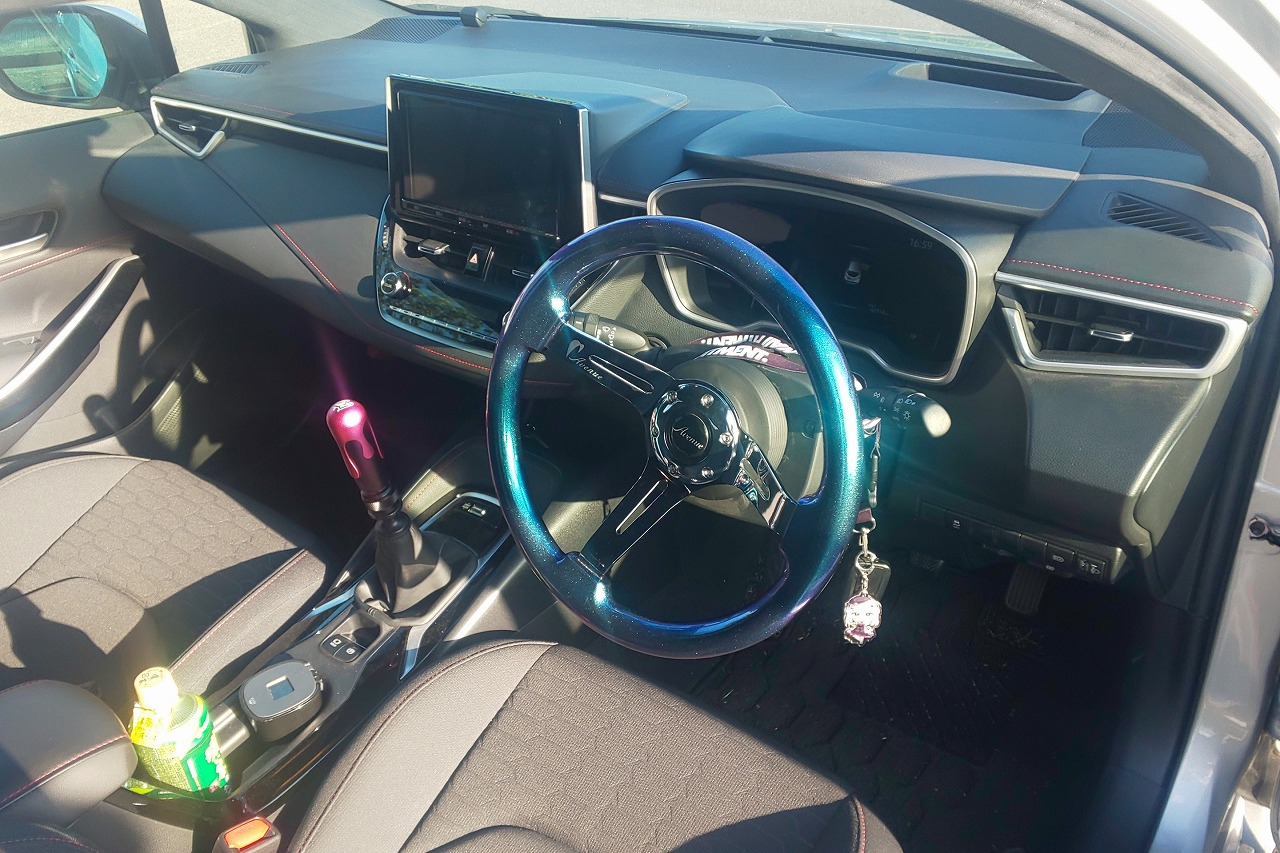 H31年式 カローラスポーツ(NRE210H) GZ 6速マニュアル 走行4.2万㎞カローラスポーツ(NRE210H)GZ、6速マニュアル車をベースにした改造車です。Tディメンド車高調、Tディメンドアーム類、SSRホイールを装着し足回りチューンしてあります。内装はAvenueのステアリングに交換してあるほかはノーマルです。カローラスポーツをベースにした改造車はまだ少ないですが、CPSでは積極的に査定、買取しています。