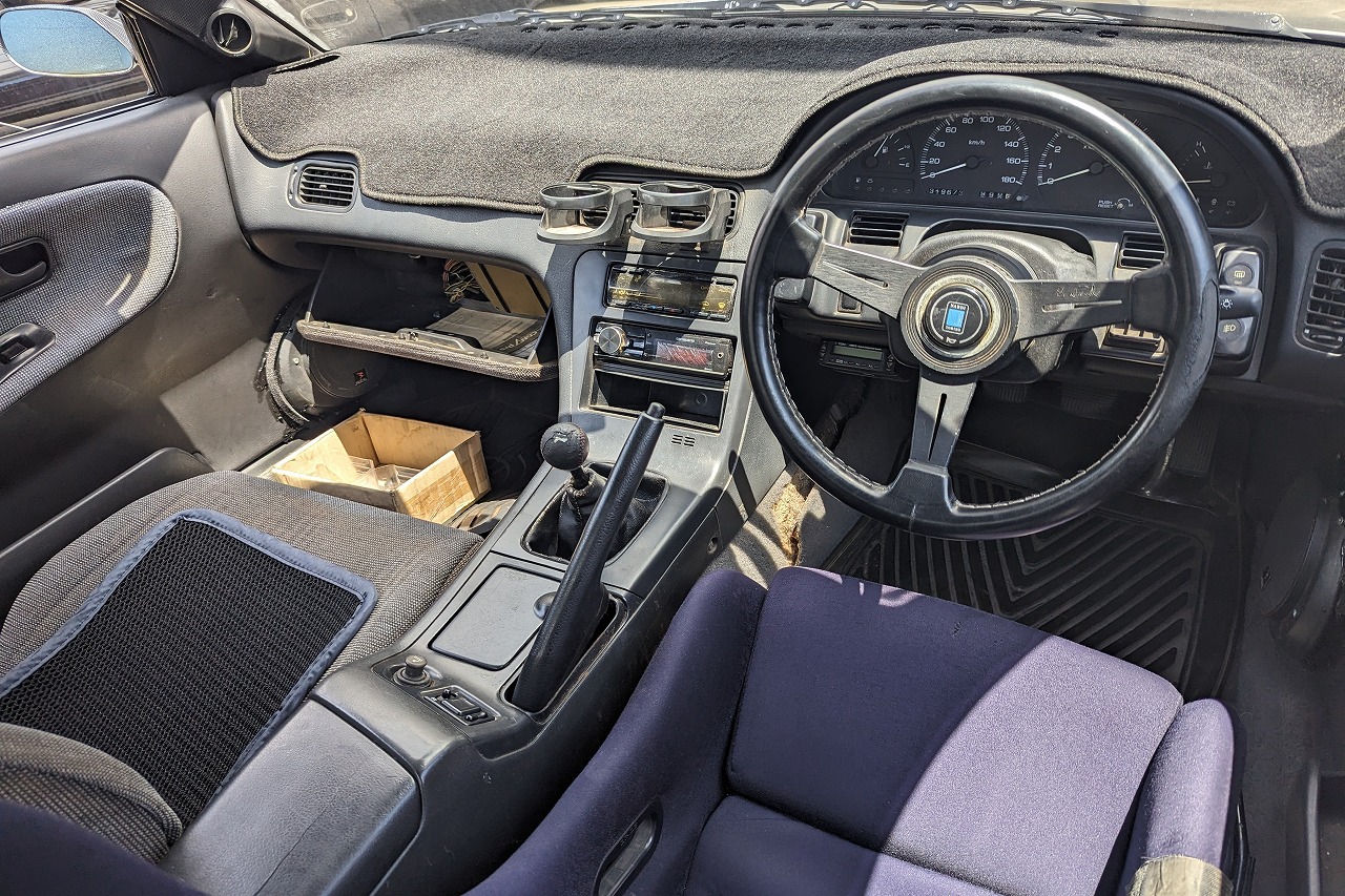 ダッシュボードに割れがありますが比較的内装パーツの状態も良いです。ブリッドのフルバケ、ナルディのステアリングに交換されています。改造車買取専門CPSではシルビア、180SX、ツアラーVなどの即ドリ仕様の改造車も多く査定、買取しています。イベント仕様、サーキット仕様、街乗り仕様など様々な仕様を高価買取‼北海道から沖縄県まで全国無料で出張査定を行っておりますので、チューニングカー、ドレスアップカーの改造車の売却をご検討されている方がいましたら、お気軽にお問合せ下さい♪