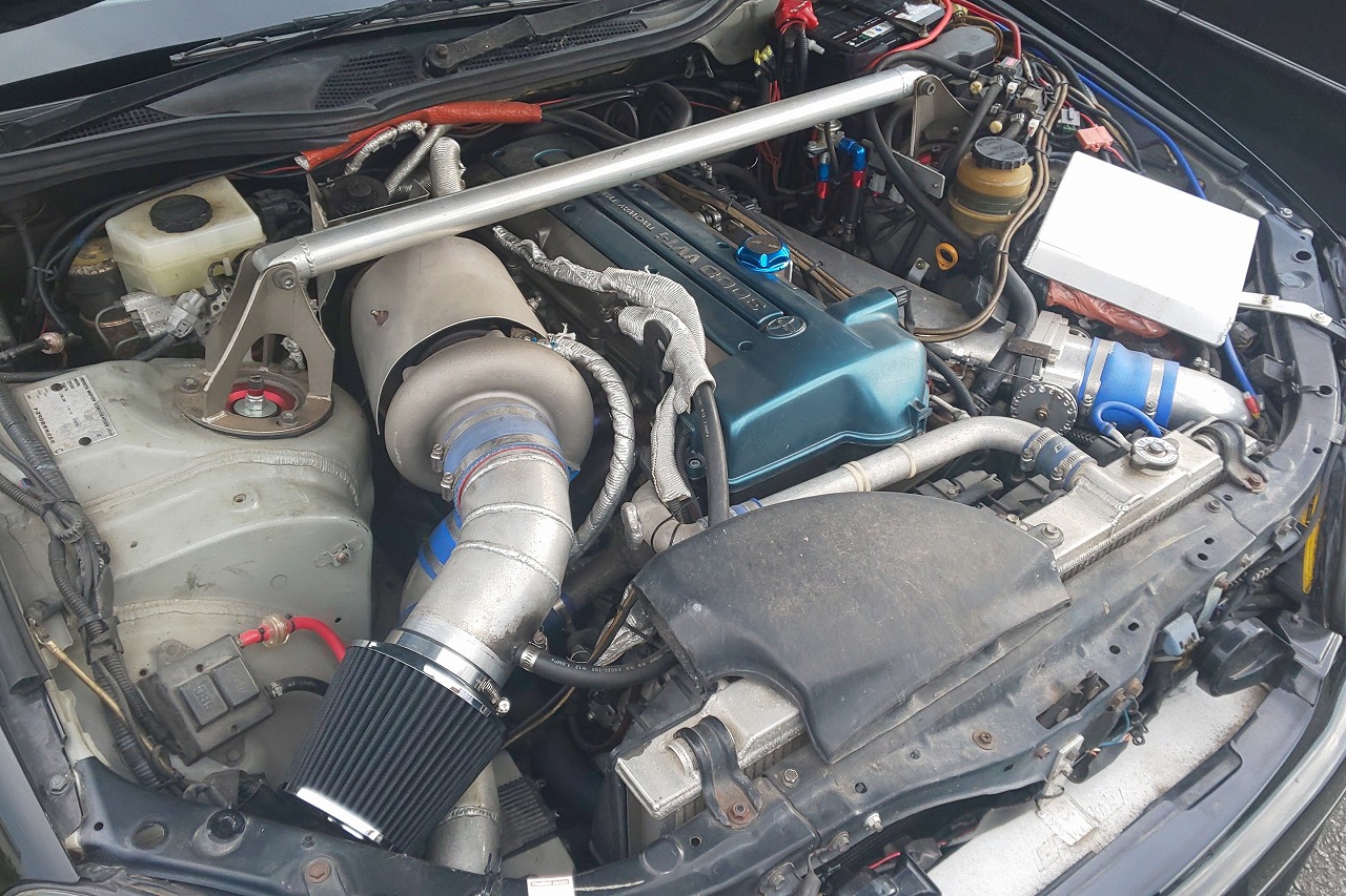HKS鍛造ピストンを組み3.1L化しトラストサージタンク、T88-33Dタービンなどを組みFコンVプロにてセッティングしてあります。