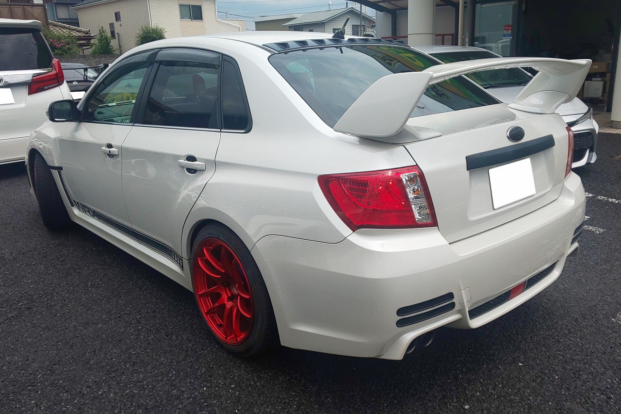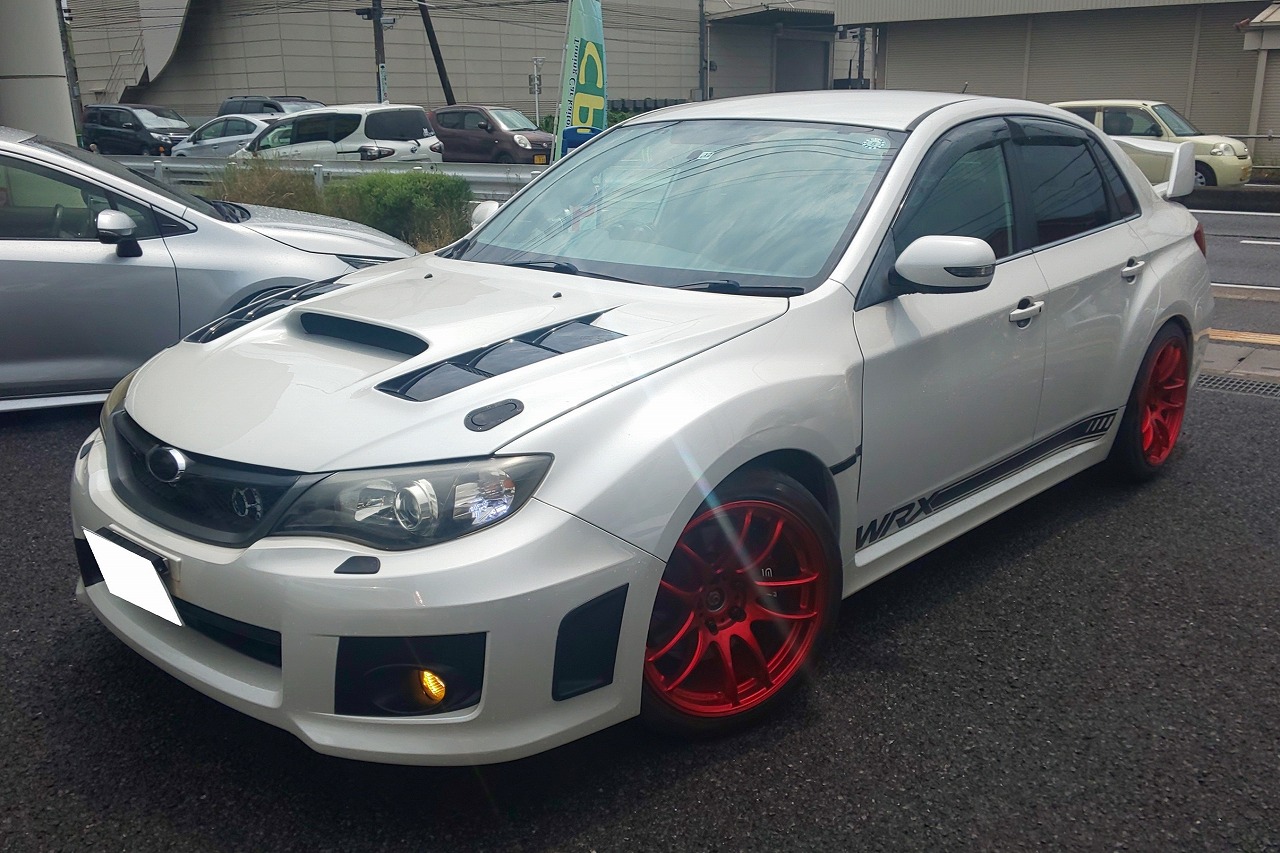H23年式 インプレッサ(GVB) WRX STi 6速マニュアル 走行9.2万㎞インプレッサ(GVB)WRX STiの改造車です。走行距離は9.2万㎞でルーフにひょう害による凹みが多数ありますが、吸排気、足回りなどチューニングしてあり、センス良く仕上げてある改造車でしたので、精一杯頑張り買取しました。ここ数年ひょう害車が全国的に増えていますが、CPSではひょう害車も社外パーツの価値をプラスし買取しています。