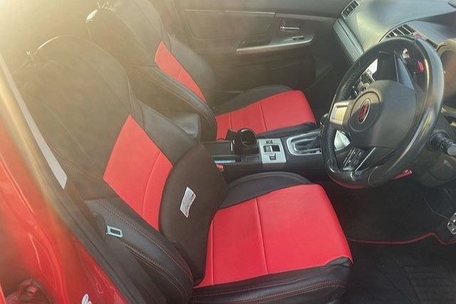 ボディカラーにマッチした赤/黒のシートカバーが装着されています。