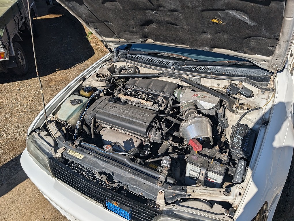 走行19万㎞ですが機関良好でARCのインテークチャンバー&エアクリーナー、社外マフラー、トラストオイルクーラーなど装着されています。