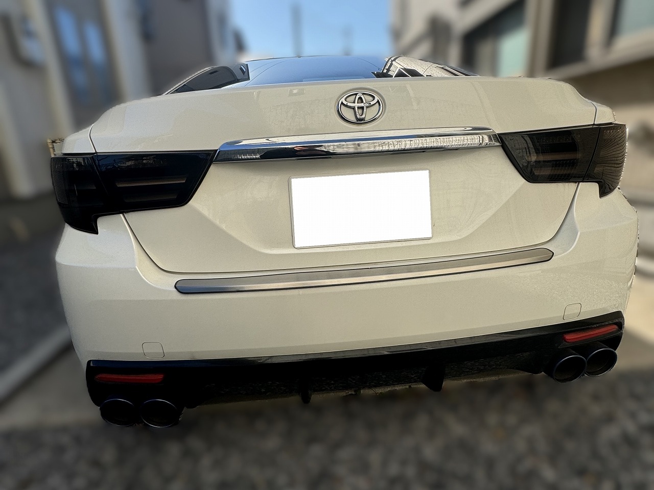 H22年式 マークX(GRX130) 250Gリラックスセレクション オートマ 走行7.2万㎞H22年式、走行7.2万㎞のマークX(GRX130)のドレスアップカーです。エンジン関係はマフラーを柿本製に交換してあります。足回りは車高調、トップシークレットのフロントアッパーアーム、KTSのリヤロアアーム、スキッドレーシングのリヤアッパーアームを装着し、社外の19インチホイールを履いています。外装は目立つキズなど少なく、ローウェンのリップ、モデリスタのサイドステップが装着されています。ノーマルアームなど外したパーツも含め買取しました。