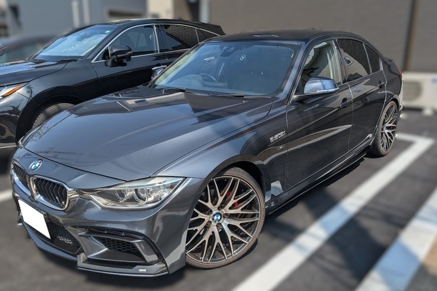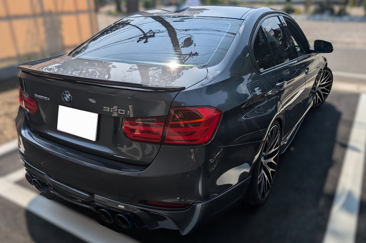 H25年式 BMW320i(3B20) スポーツ オートマ 走行6.4万㎞H25年式BMW320i(3B20)をベースにしたドレスアップカーです。エンジン関係は車検対応のエナジーモータースポーツのマフラーに交換してあります。外装はアイバッハのスプリングでローダウンしエナジーモータースポーツのエアロ&ホイールを装着してあります。内外装の状態が良く車検に対応して仕様でドレスアップしてあるので、普段乗りにピッタリな改造車でしたので、高価買取できました。