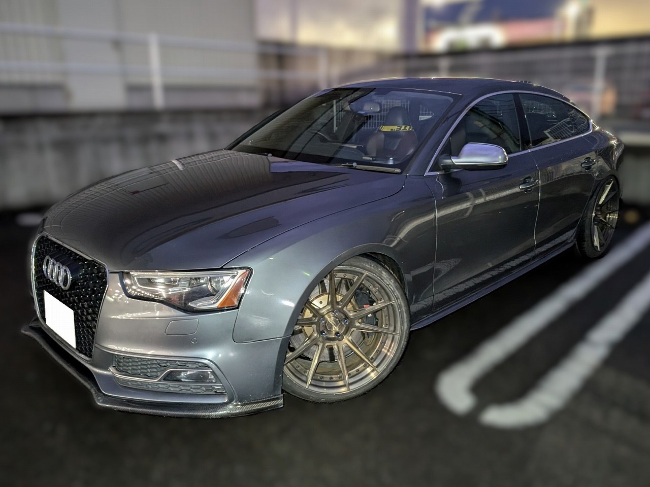 H24年式 アウディS5スポーツバッグ(8TCGWL) オートマ 走行10.0万㎞H24年式、走行10万㎞のアウディS5スポーツバック(8TCGWL)のカスタムカーになります。エンジンはinjenエアクリ&サクションパイプ、アーミートリックのマフラーに交換しECUチューンしてあります。内装はノーマルですが外装はZSS車高調、BCフォージッドのホイール、社外のリップスポイラー、ウイング、リヤディフューザー、RSグリルなどでドレスアップしてあります。シンプルながらしっかりカスタムされている車だったので、カスタムした価値をプラスし買取できました。