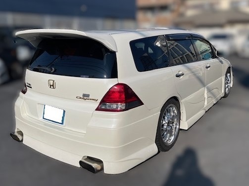H16年式 オデッセイ(RB1) アブソルート オートマ 走行17.0万㎞H16年式、オデッセイ(RB1)、1オーナー車のドレスアップカーです。ドレスアップ内容はアフェクションのエアロパーツ、テインの車高調、社外のホイール、アフェクションのマフラーなどになります。走行17万㎞ですが内外装、機関の状態が良く、まとまりのあるドレスアップが施されていたため、精一杯の金額をご提示し買取しました。