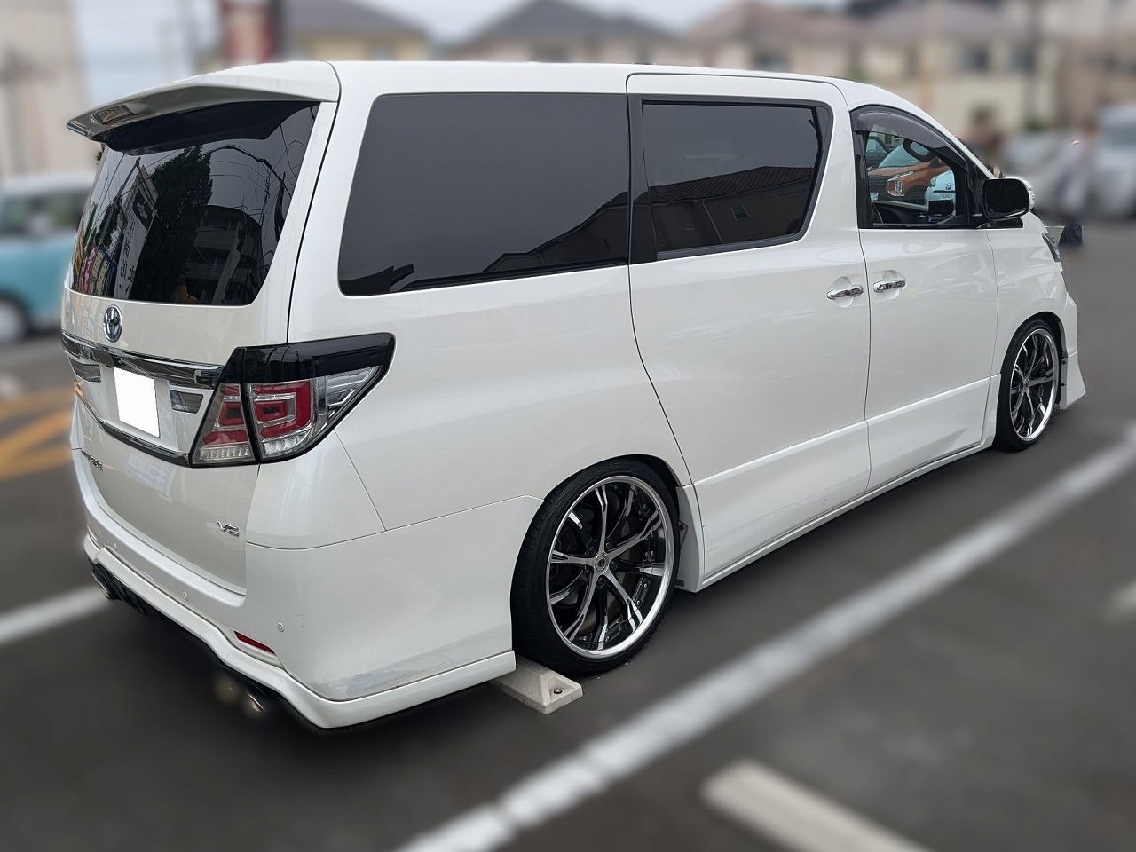 H25年式 ヴェルファイア(GGH20W) 3.5Z オートマ 走行4.6万㎞1オーナー車のH25年式、ヴェルファイア(GGH20W)の8人乗りのカスタムカーになります。モデリスタのフロントバンパー、アドミレーションのサイドステップ&リヤバンパー、社外テールランプなど装着したエクステリアに、足回りはイデアルのエアサス、シュバートホイールが組んであり、マフラーもアドミレーション製です。内装はケンウッドのナビ、アルパインのフリップダウンモニターが装着されています。年式のわりに走行距離が少なく機関、内外装の程度の良いカスタムカーのため高価買取できました。
