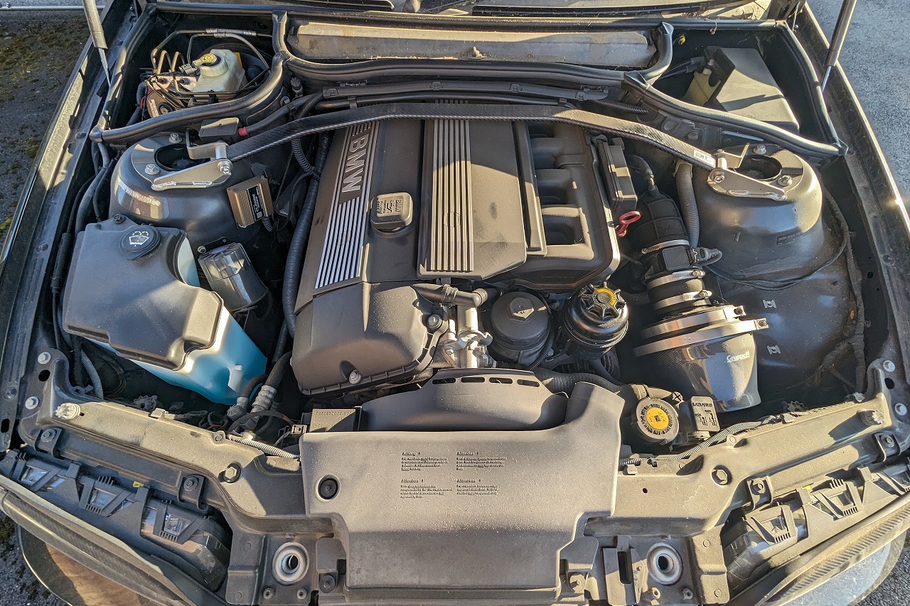 BMW320iの改造車です。8年間エンジンを掛けていない不動車ですがグループMエアクリ、社外マフラー、KW車高調、レカロセミバケットシート、BBSLMホイールなど装着されていましたので、アフターパーツの価値をプラスし買取しました。