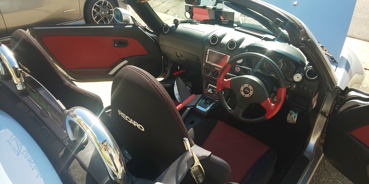 純正のレカロシート&MOMOステアリングです。改造車買取専門CPSではコペン、S660、アルトワークスなどの軽スポーツカーを査定、買取しています。北海道から沖縄県まで全国無料で出張査定を行っておりますので、チューニングカー、ドレスアップカーの改造車の売却をご検討されている方がいましたら、お気軽にお問合せ下さい♪