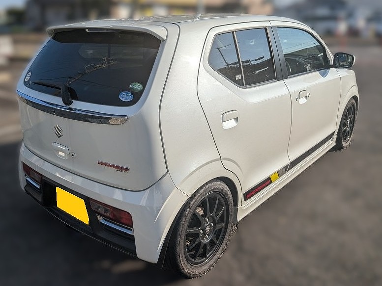 H28年式 アルトワークス(HA36S) 5速マニュアル 走行4.5万㎞H28年式、FFモデルのアルトワークス(HA36S)をベースにした改造車です。エンジン関係はマフラーを柿本製、ECUをRRPのスーパーロムに交換しパワーアップしてあります。足回りはテインの車高調、駆動系はクスコのLSDが組んであります。室内もMOMOのステアリング、レカロのフルバケが装着されています。外装はホイールがノーマルですがRRPのカーボンボンネットに交換されています。走行4.5万㎞で内外装、機関良好な改造車のため、精一杯頑張り買取しました。