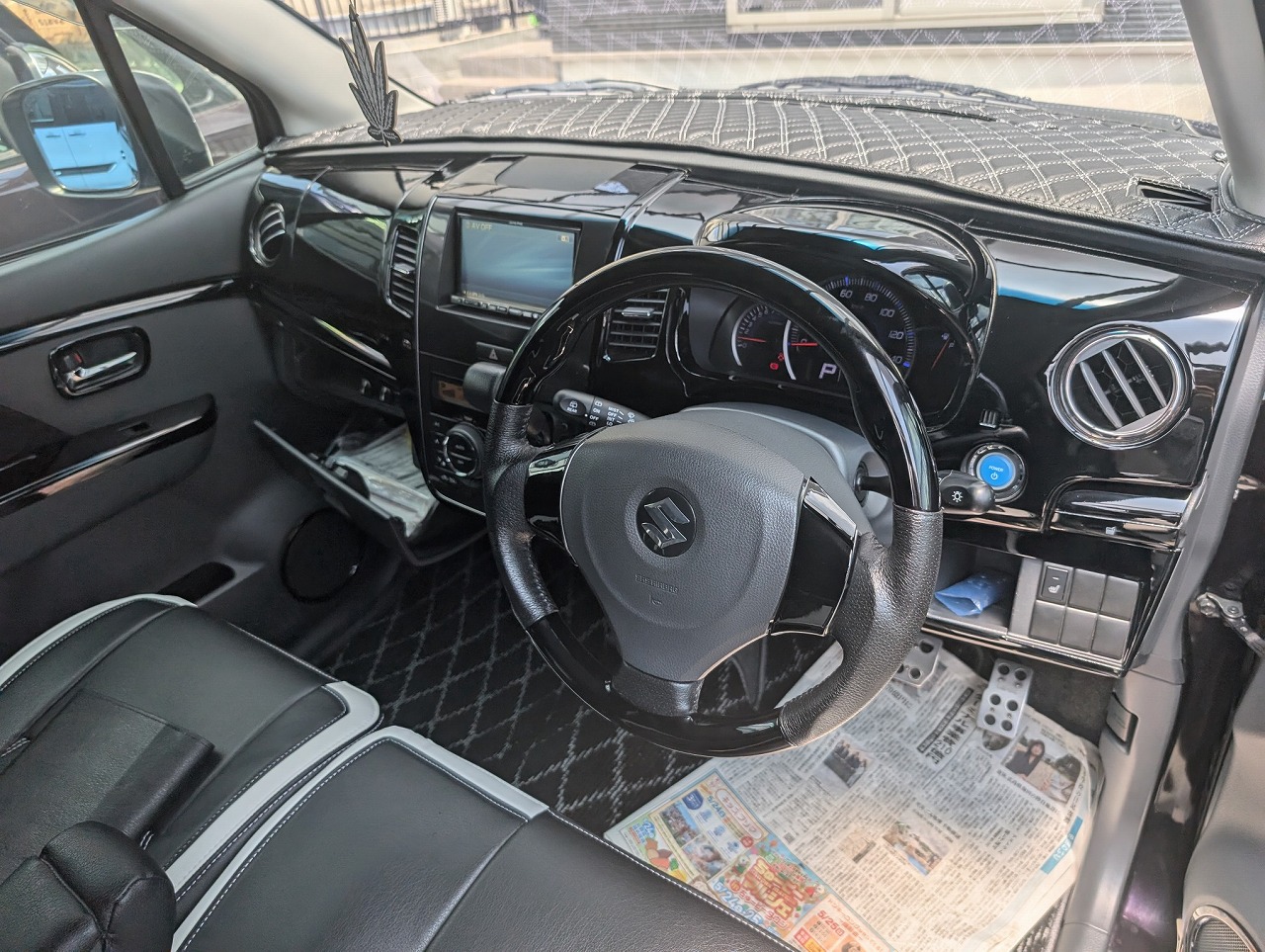 室内のパネル類をピアノブラックで塗装してあり、グレイスのシートカバーが装着されています。