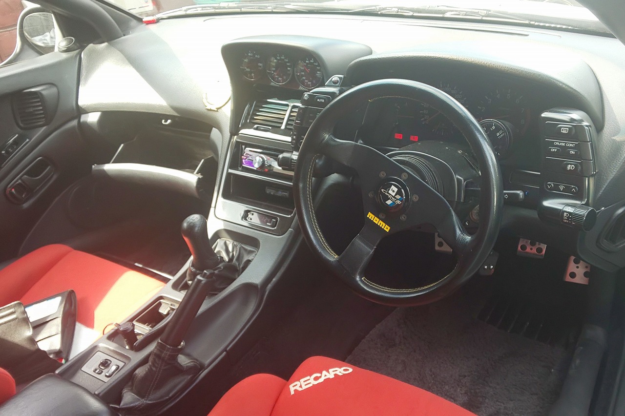 室内も程度が良く、ダッシュ貫通ロールバー、デフィ追加メーター、レカロバケットシートなど装着してあります。