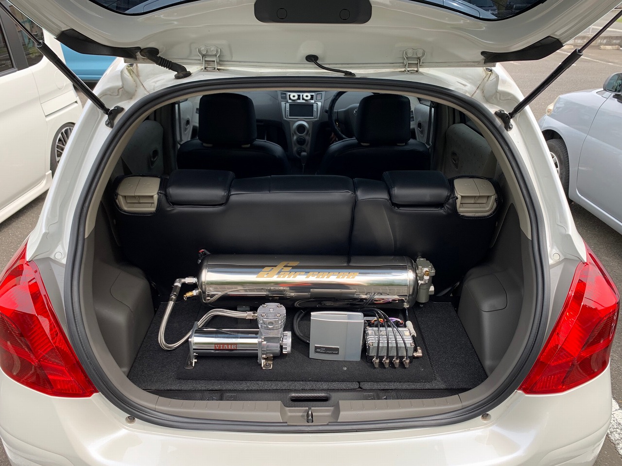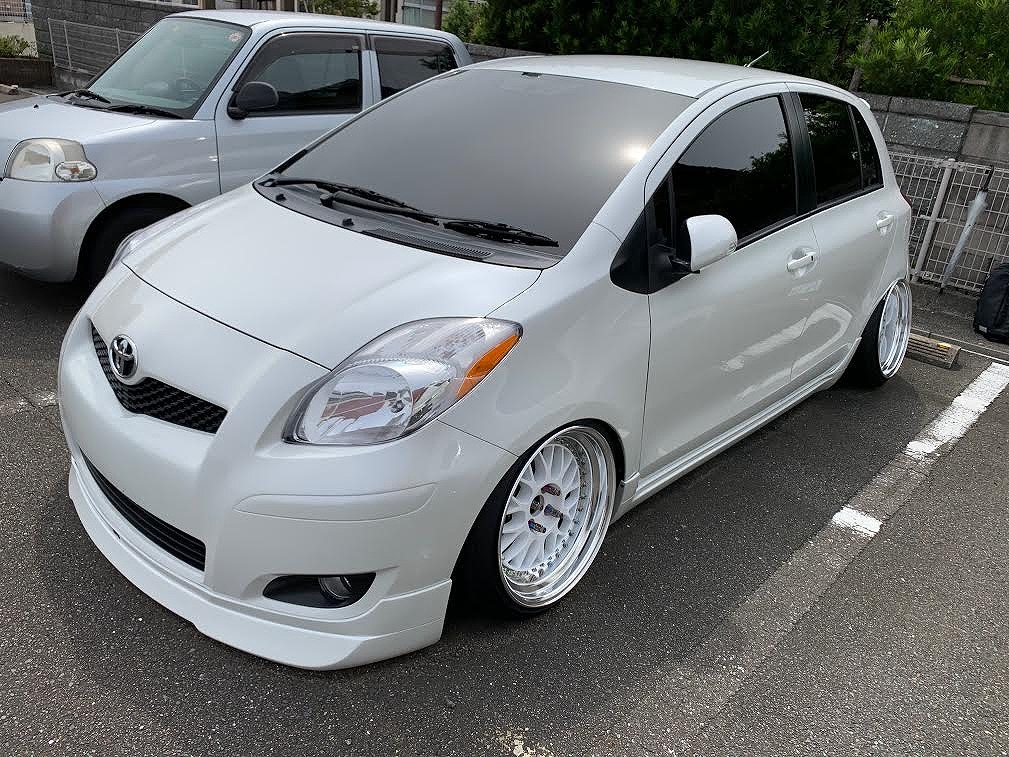 ワンオフ.マフラー/エアフォース.エアサス/J-LINE.リアアスクル10°/社外フロントリップ/USヤリス.ヘッドライト、テールランプ/WORK.17インチホイール etc.