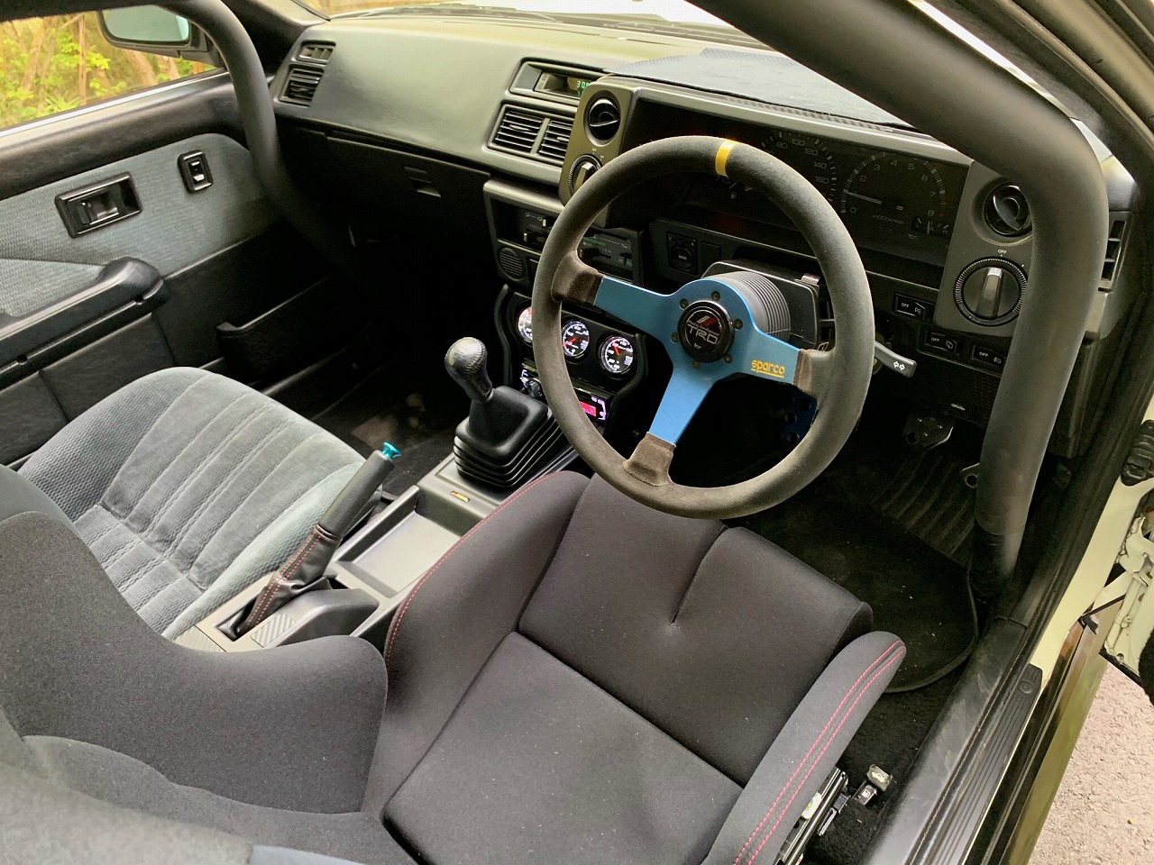 外装はオリジナルでサンルーフ付きでトレノ用テールランプに交換しワタナベ15インチを履きレボルブの車高調でローダウンされております!