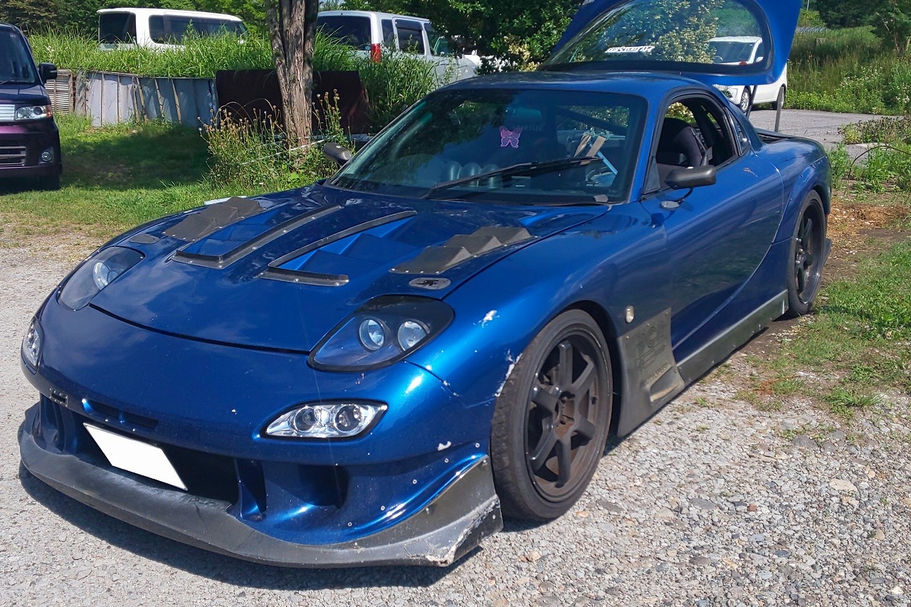 5型のタイプRSをベースにチューニング、ドレスアップしてあります。エンジンはOH後1.5万kmでTD06-25Gタービンが組んであるVマウント仕様です。クラッチ、LSD、ブレーキ、足回りなど一通りチューニングしてあり、このままサーキット走行が楽しめる車に仕上げてあります。外装はRE雨宮のエアロが組んであり、RX-7好きに人気のスタイルに仕上げてあります。