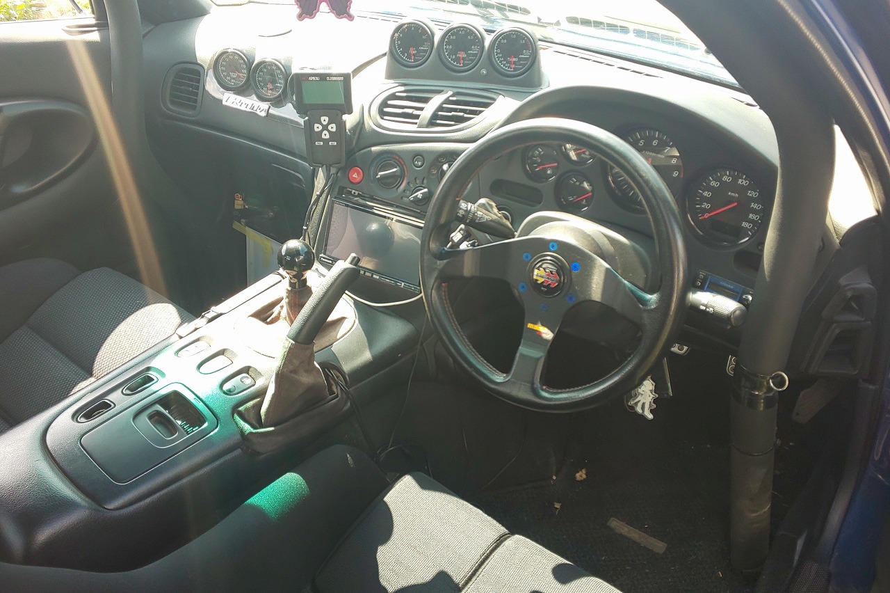 内装はロールバー、ブリッドシート、MOMOステアリング、各種追加メーターなど装着してあります。