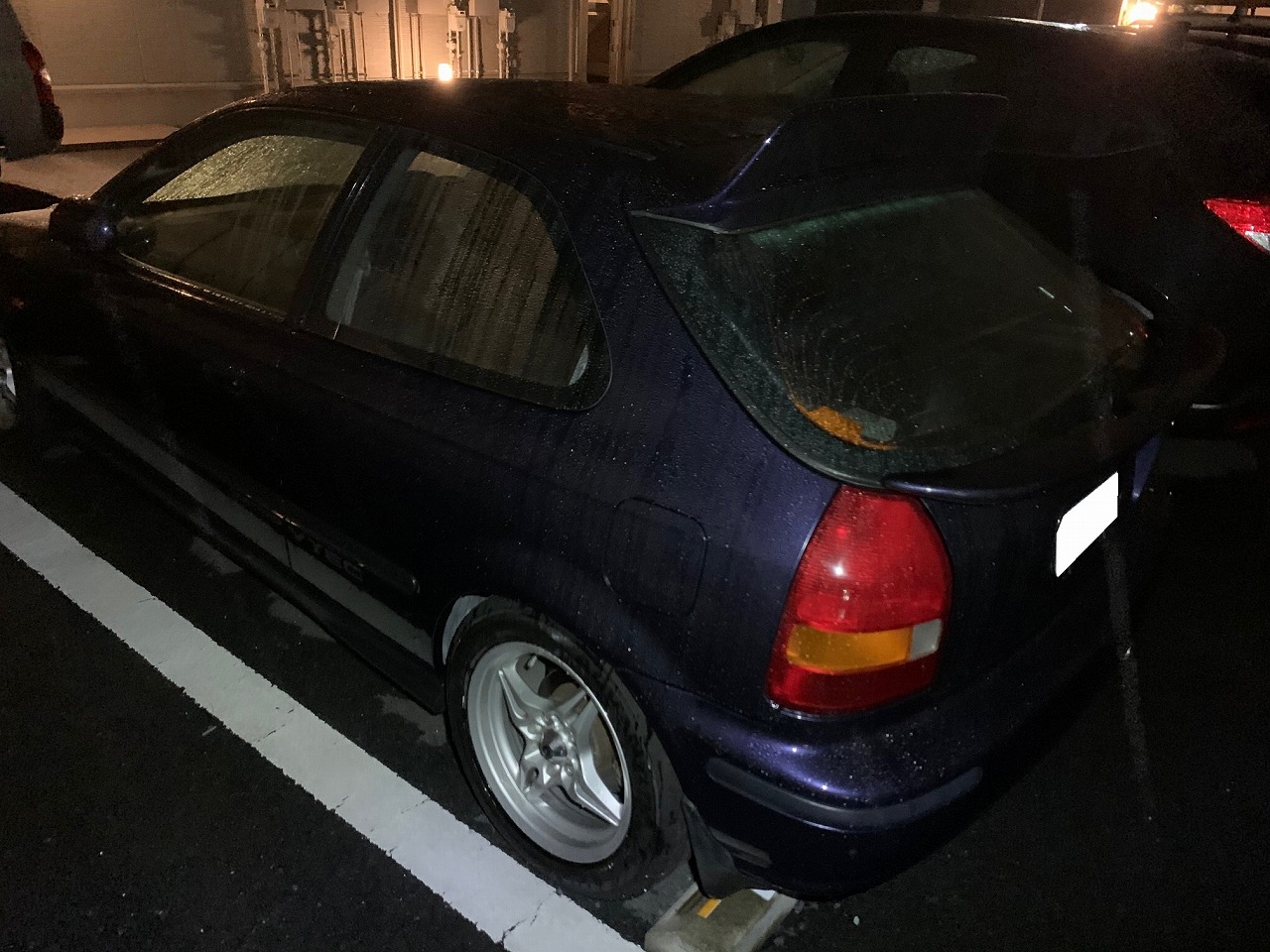 H9年式 シビック5速マニュアル 走行距離が7.9万kmです。テインの車高調でローダウンされておりLSDがEK9用が入ってます。