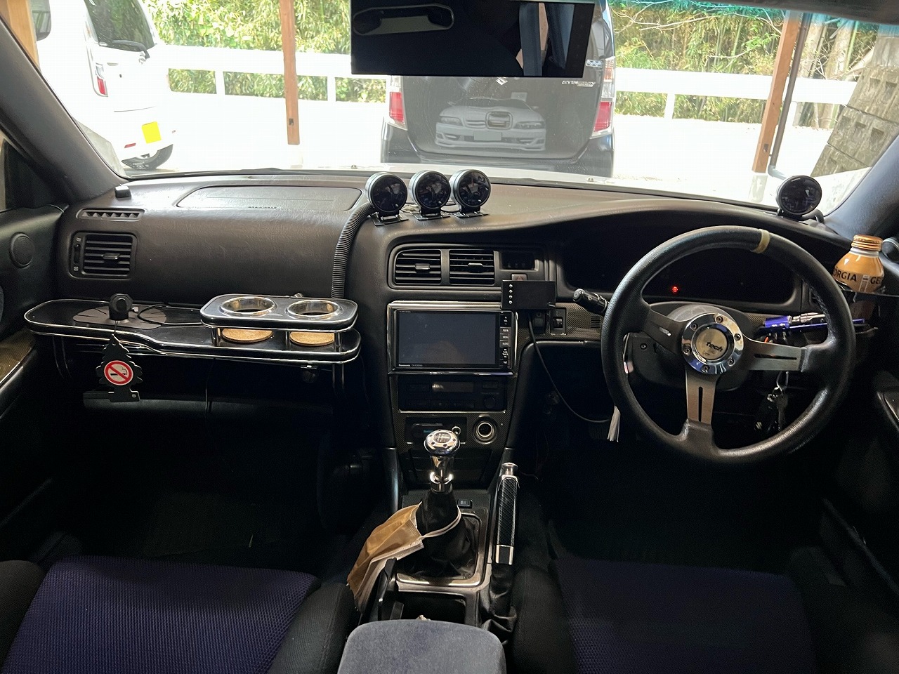 内装はレカロSR-3セミバケットシート、社外ステアリングTRD320kmメーター、社外4連追加メーターが追加、交換され即ドリ仕様になっております‼当店ではJZX100、JZX90、JZX110等はMT AT、ターボ NA載せ替え関わらずに高価買取しておりますので是非CPSまでお問い合わせ下さい‼
