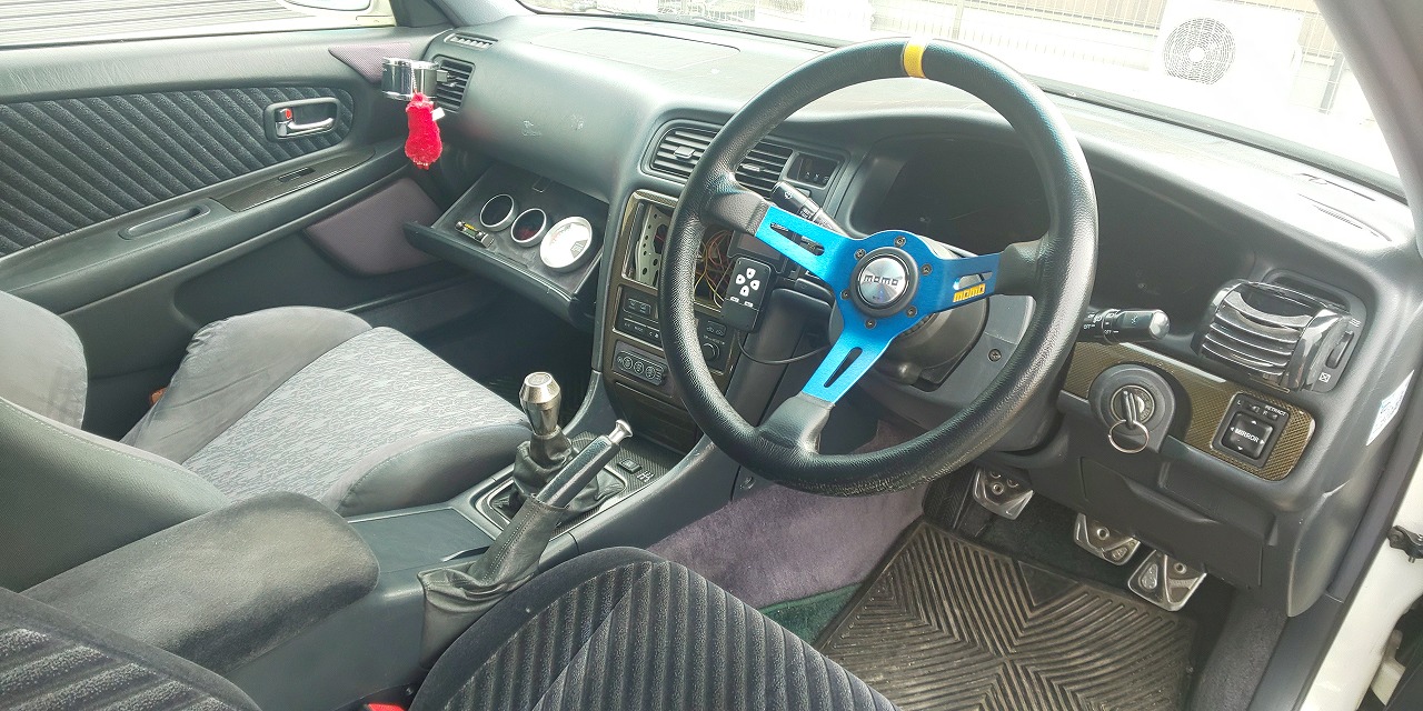 社外ステアリング、各種追加メーターも装着してあります。