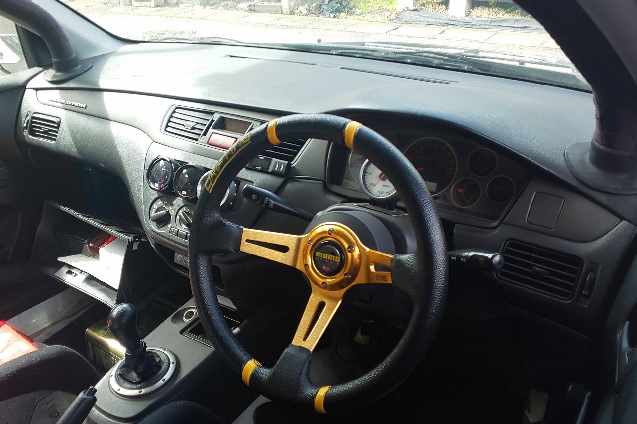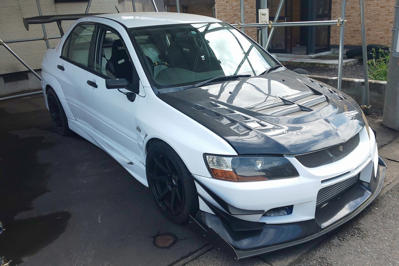 ハイカムを組んだエボ8MRのエンジンに東名のM7963タービンを組んでパワーアップし、足回り、駆動系など一通りチューニングを施したサーキット仕様のランサーRSエボリューション7です。ドンガラ、エアコンレスの車ですが秋田から埼玉まで自走で引上げました。