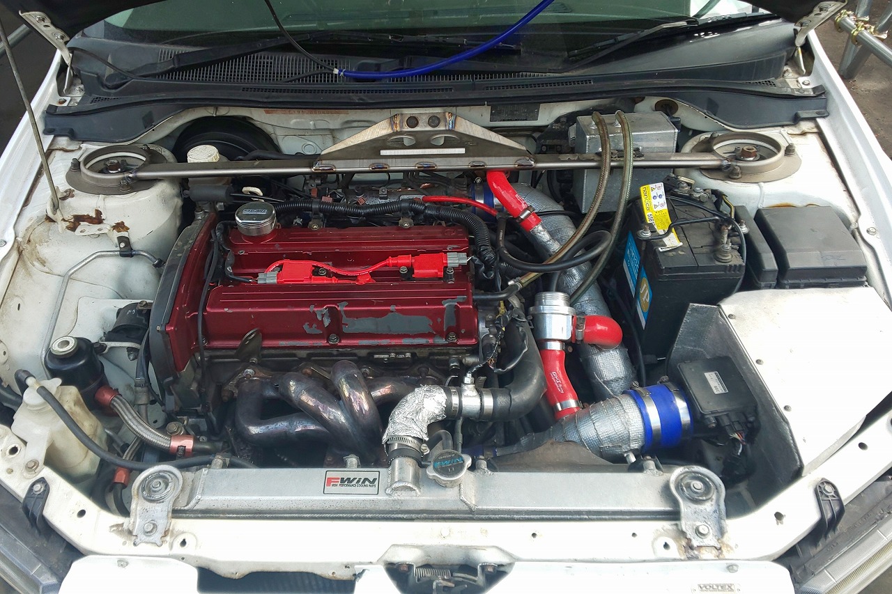 ハイカム&ヘッドガスケットを組んだエボ8MRエンジンに換装してあり、タービンは東名のM7963に変更してあります。