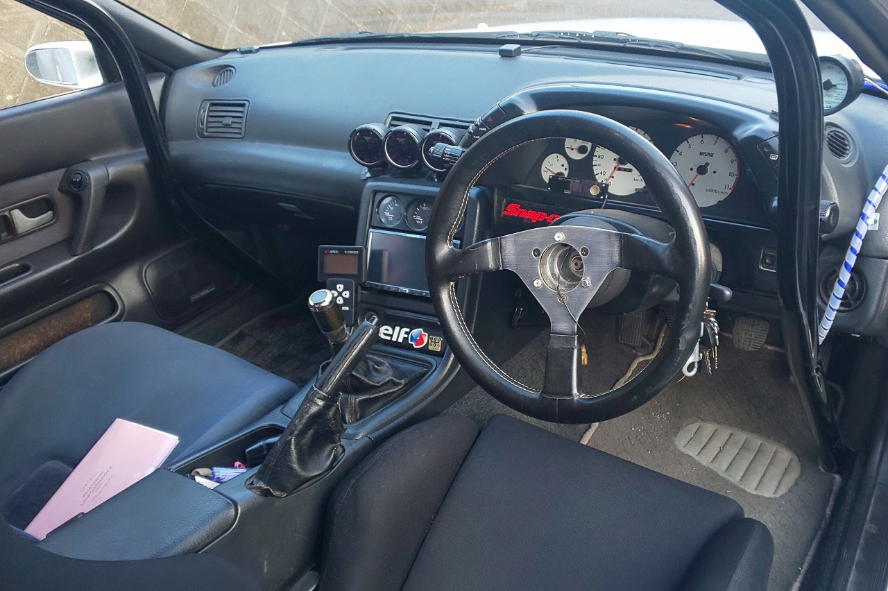 追加メーター、社外ステアリング、ロールバー、バケットシートなど装着してあるのでスポーツ走行も楽しめそうです。