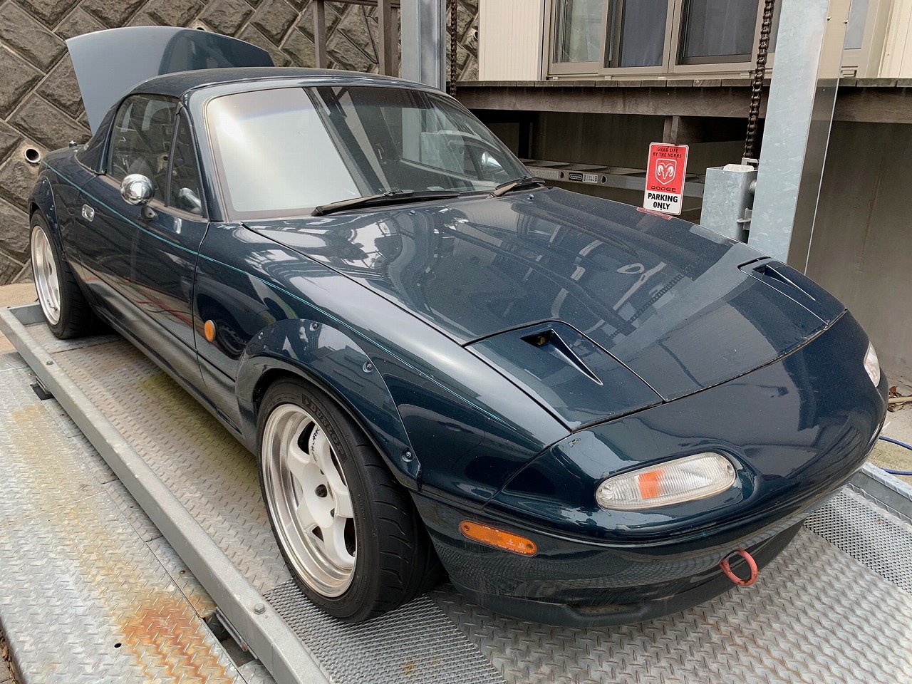 外装は社外オーバーフェンダーにWrokマイスター16インチを履き戸田レーシングの車高調でローダウンしてあります!フロントにはWILLWOODの4POTキャリパーが装着されております!