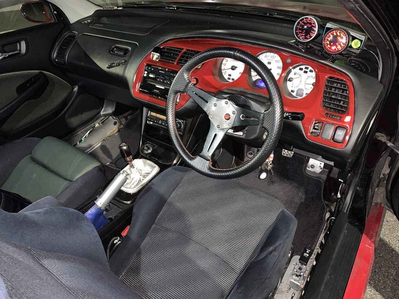 追加メーター(水温/油温)、社外ステアリングなど装着してあります。 走行距離が気になりますが機関の調子が良い車でした。アコードやトルネオなどの買取のさいは、改造車買取専門CPSまでお気軽にご連絡下さい。
