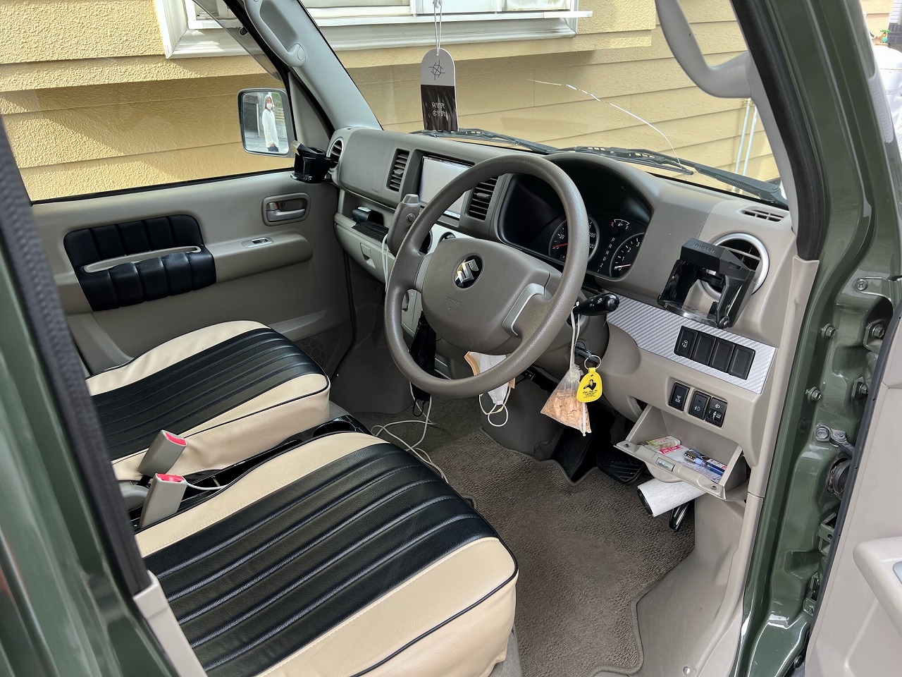 車内はシートカバーやドア内張を張替えをしていたりとオシャレに仕上がっておりました!CPSでは軽バンのリフトアップ等カスタムカーや、ハイエース、キャラバンなどのカスタムカーも買取しておりますので是非CPSまでお問い合わせ下さい!