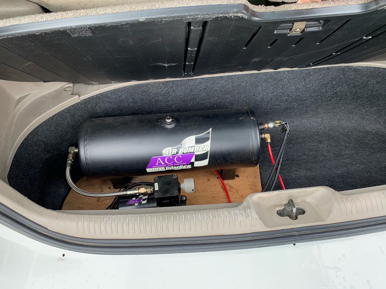 エアサスのエアタンクはトランク下収納にしまわれております!