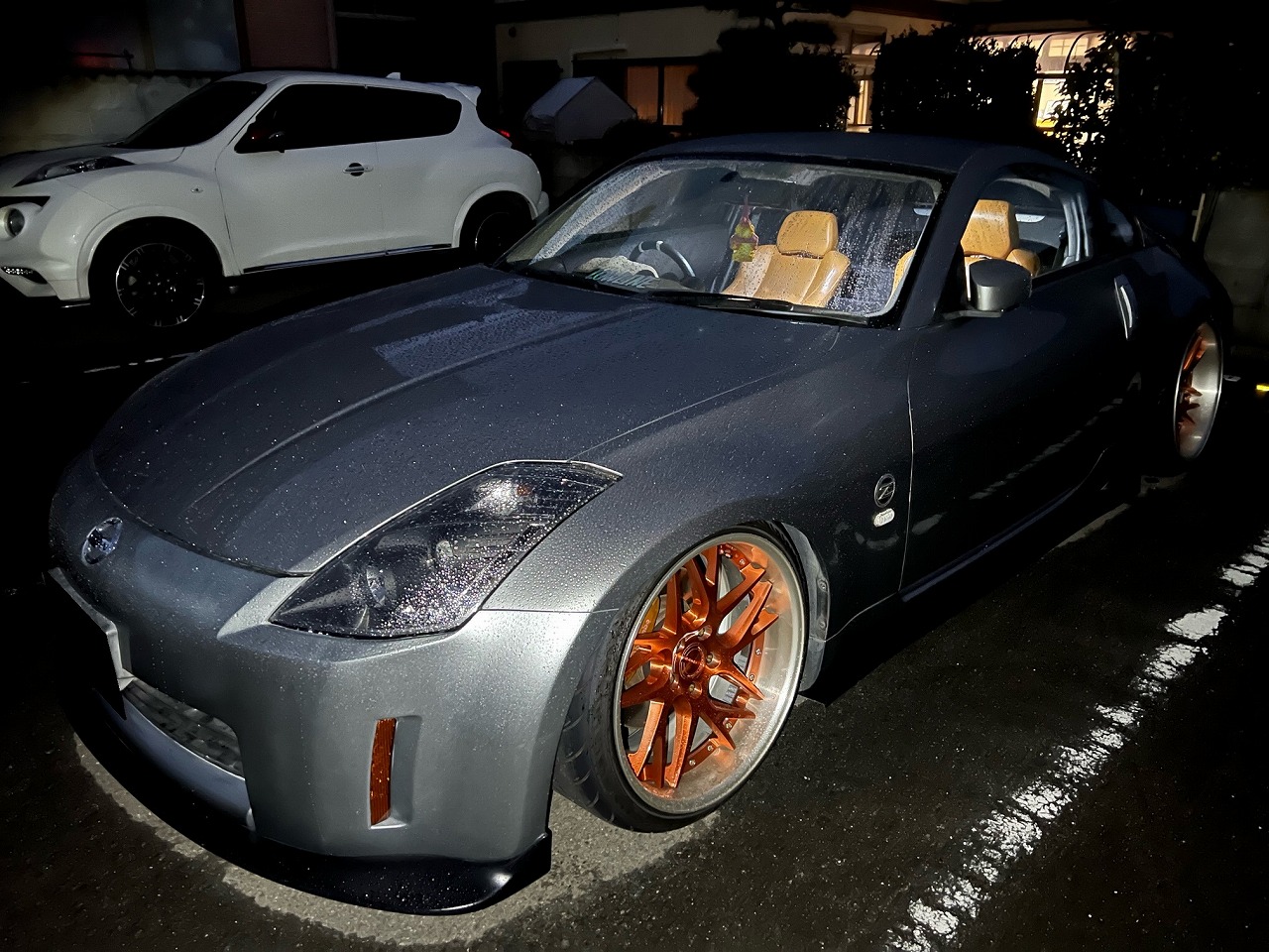 平成14年式 フェアレディZ(Z33) バージョンST 6速MTで走行距離が11.8万kmです!外観は社外フロントリップ、社外サイドステップ、社外ディフーザー、libertywalkのダックテールを装着しWorkグノーシス19インチを履いて326powerの車高調でローダウンされております!