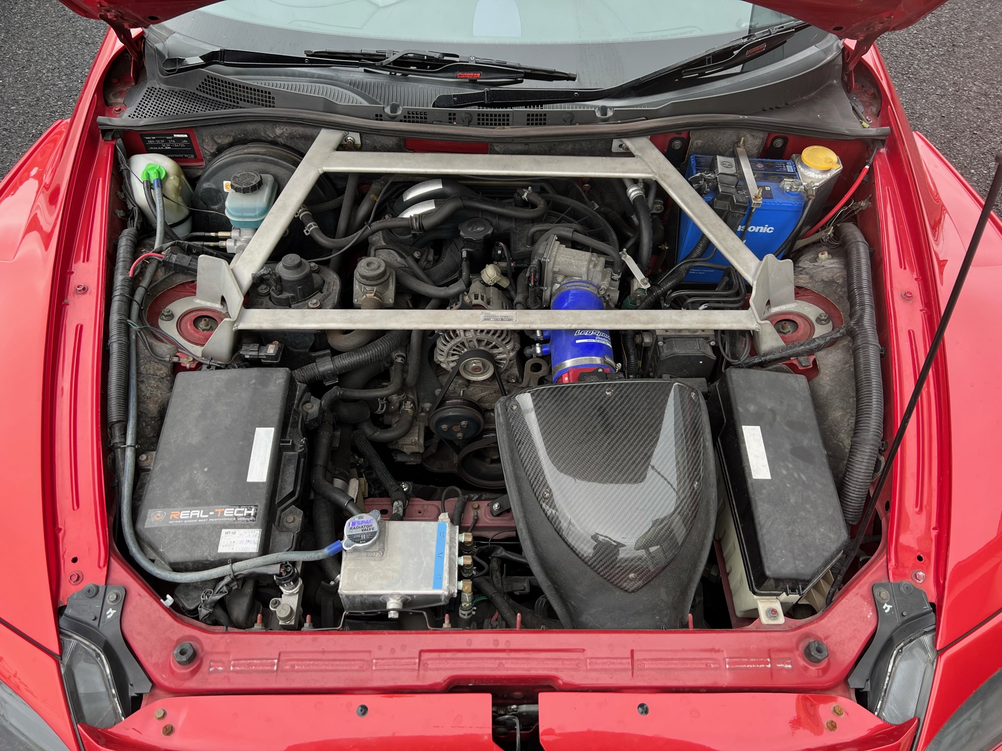 <主な改造内容>ナイトスポーツ エアグルーヴ/KOYO アルミラジエター/マツダスピード オイルクーラー増設、マフラー/レッグモータースポーツ シリコンホース、エキマ二/ORC 250ライトクラッチ/オートエグゼ ダウンサス/DIXEL スリットローター/マツダスピード 前後タワーバー/RE雨宮 フロントバンパー、サイドディフーザー/ナイトスポーツ リアバンパー/レッグモータースポーツ フロントフェンダー/Rマジック アイライン/ヴァレンティ テールランプ/Defi 水温計、油温計、油圧計/レカロ フルバケ etc.