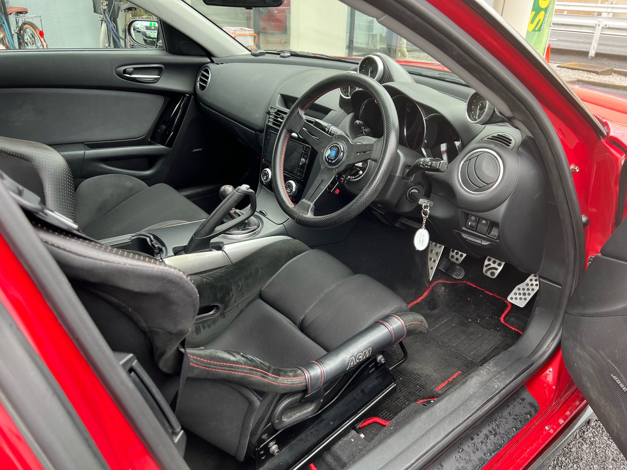 平成18年式 RX-8 タイプS 6速マニュアルで走行距離が12万kmです!外観はRE雨宮 フロントバンパー、サイドディフューザー、ナイトスポーツ リアバンパー、レッグモータースポーツ フロントフェンダー、Rマジック アイライン、ヴァレンティ テールランプ、ガナドールミラー等に交換しオートエグゼのダウンサスでローダウンされております!