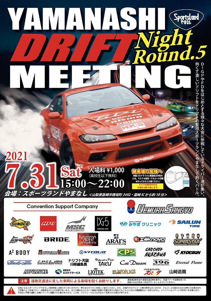 改造車買取専門CPSでは7月31日にスポーツランドやまなしで開催された今村陽一氏主催【山梨DRIFT Nightミーティング】に協賛させて頂きました。