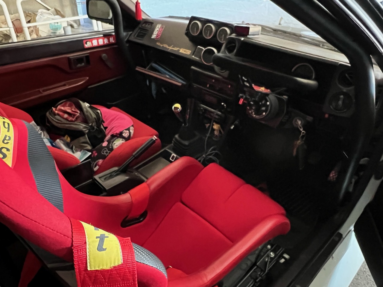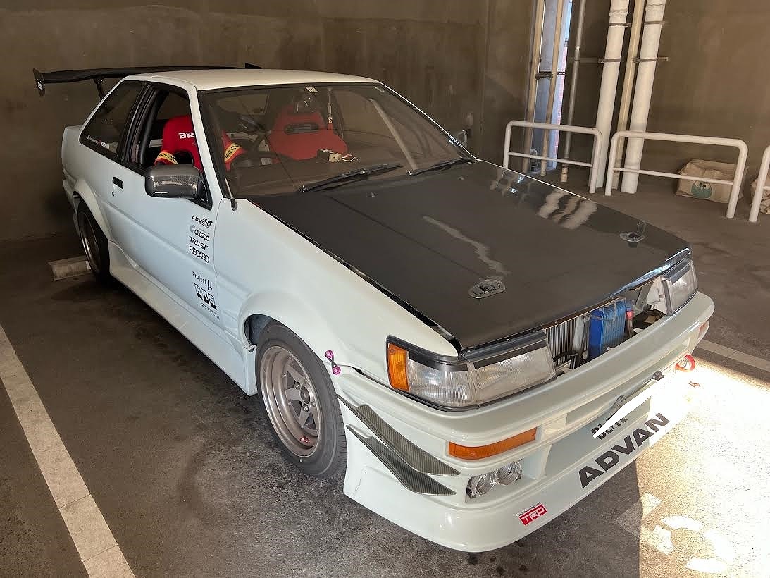 <主な改造内容>AE92後期エンジン/AE101 コンロッド、クランクシャフト、4連スロットル/HKS ハイカム/PMC エアクリ/トラスト エキマニ、オイルクーラー/フジツボ マフラー/クスコ オイルキャッチタンク、LSD/TRD 3速クロス/社外 車高調/社外 8点式ロールバー/スピードスター XR-4/社外 フロントバンパー、サイドステップ、リアバンパー、ボンネット、GTウイング、フロントフェンダー/ワンオフ鉄板リアフェンダー/NS 水温計、油温計、油圧計、タコメーター/Defi バキューム計/BRIDE フルバケ/レカロ セミバケ/社外ステアリング etc.