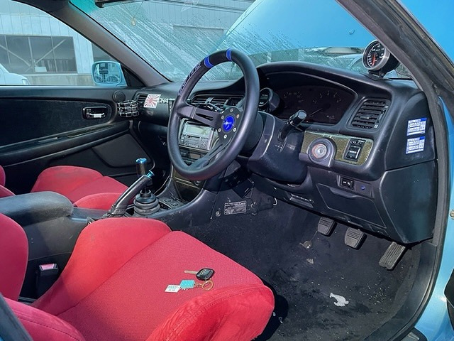 内装はレカロのセミバケ、Defi追加ブーストメーター、PLX空燃比メーター 、MOMOステリングを交換、装着しています。