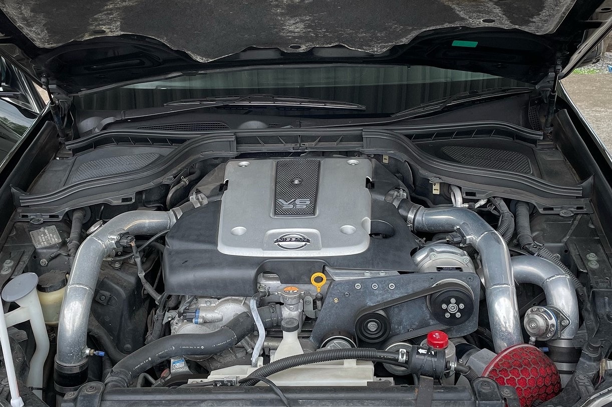 フーガ用がないためフェアレディZ用を加工してスーパーチャージャー化してあるようです。