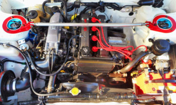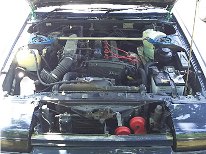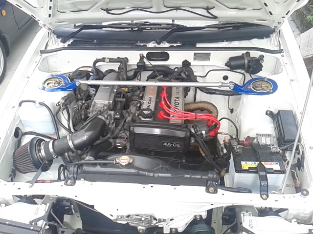 - ●HKSハイカムを組みOHしたAE92エンジンにアペックスエアクリ、RS★Rタコ足、柿本マフラーで吸排気チューン!