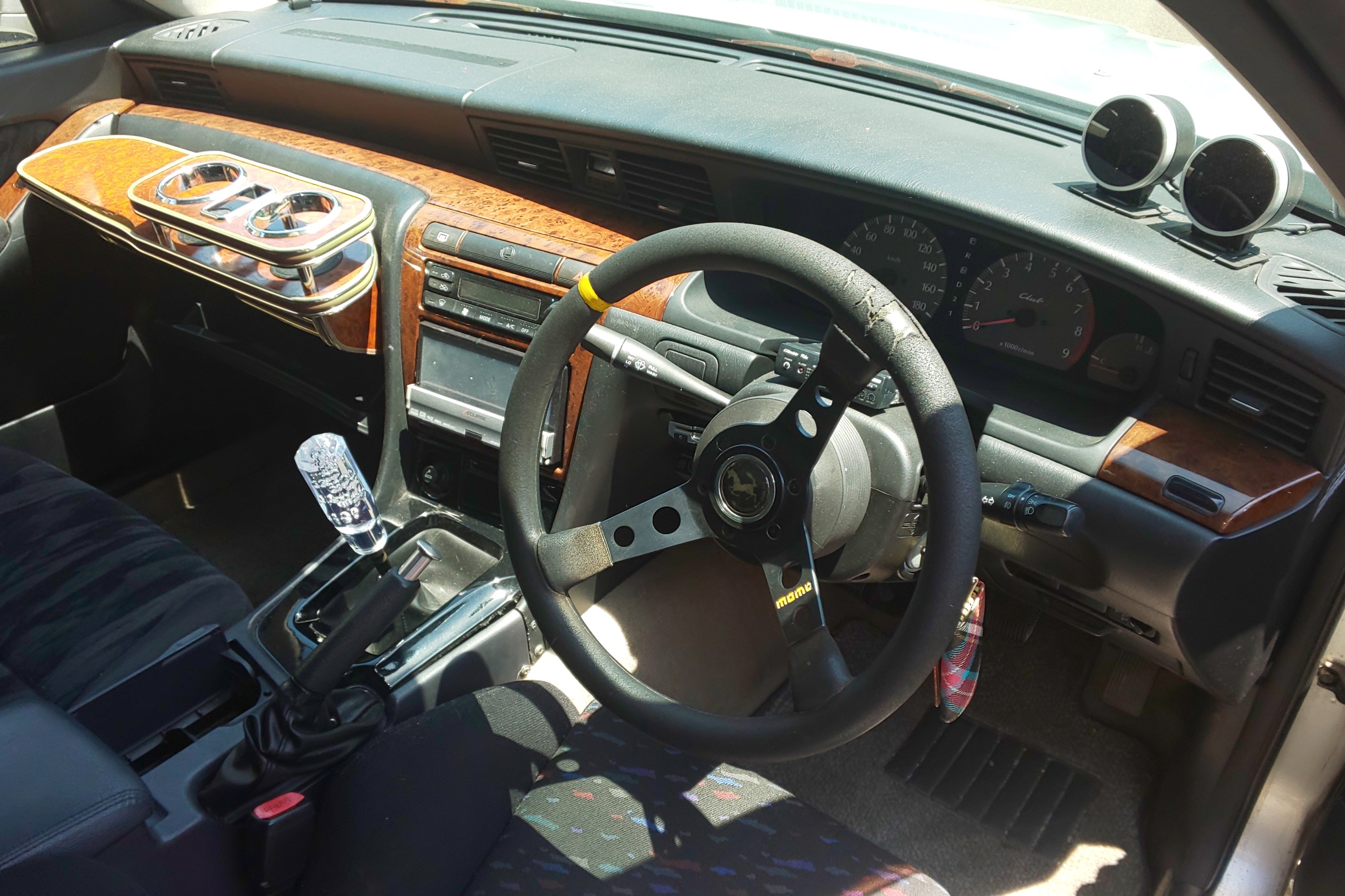 元々RB25ターボエンジンのローレルをベースにチューニング&ドレスアップしている改造車です。オートマから5速マニュアルに換装してあり、エンジン関係はアペックスエアクリ、アペックスインタークーラー、社外マフラーを組んでトラストのブーストコントローラーでブーストアップしてあります。バディクラブ車高調、社外エアロ、レカロシートなども組んであります。