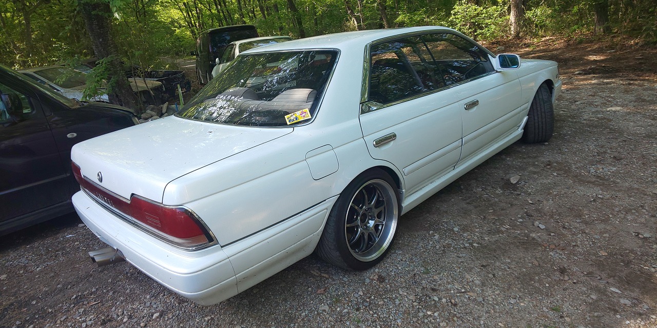 平成2年式 ローレル HC33改で走行距離が13万kmです!外回りは社外フロントリップにワークD9R17インチを履き社外車高調でローダウンされております!