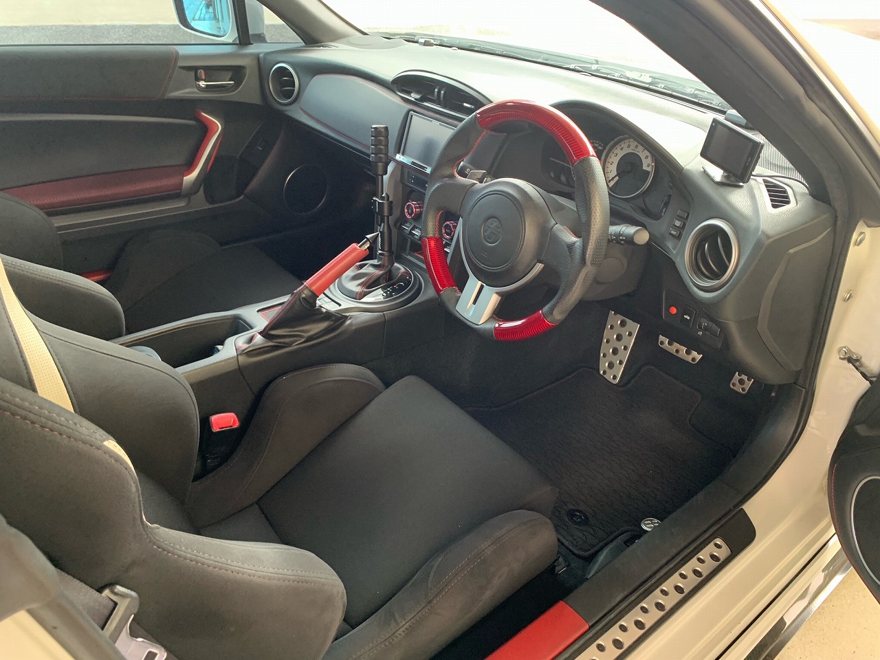 内装も細部までこだわっておりRECAROセミバケ2脚にBRZ後期型のインテリアパネルに交換し革やアルカンターラ等バランスよくまとまっております!こちらのお車はAT車ですがHKSスーパーチャージャー、ROWENフルエアロ、内装等バランスよくチューニング、ドレスアップされていたため高価買取いたしました‼