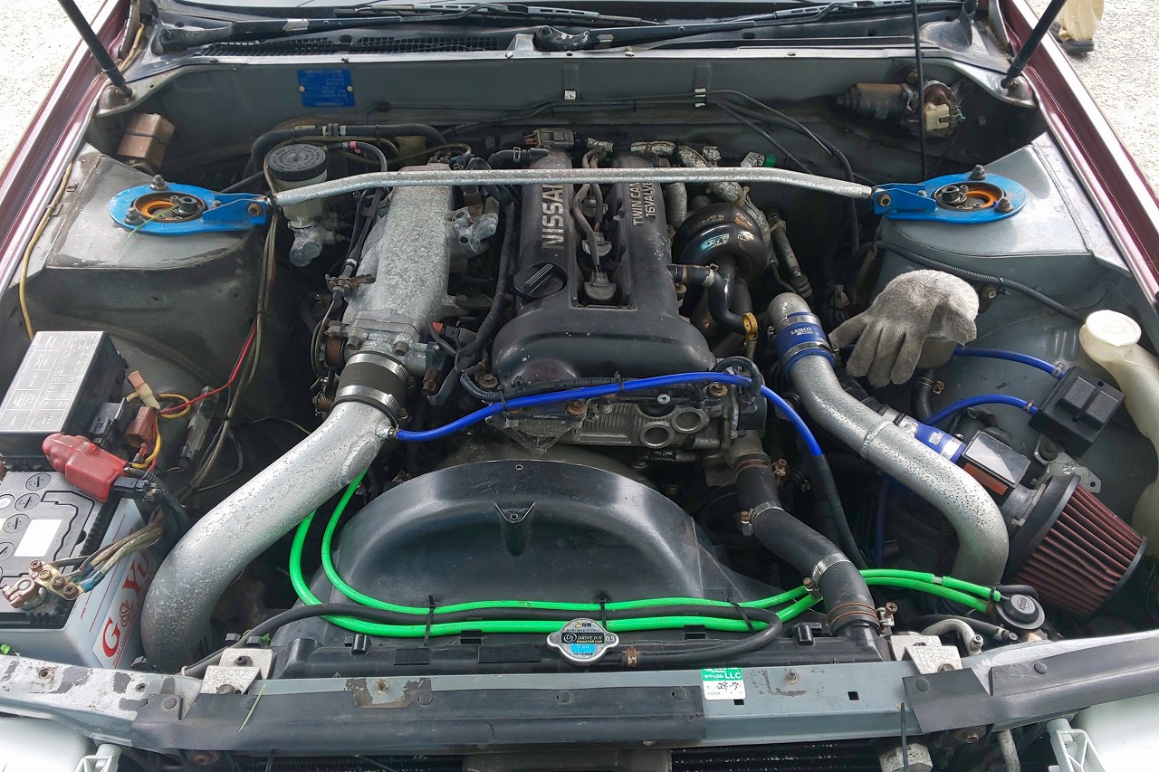 SR20エンジン換装/GT-SSタービン/アペックスエアクリ/社外エキマニ/社外アウトレット/社外マフラー/Z32エアフロ/HKSブーストコントローラー/強化クラッチ/クスコLSD/車高調(F:オーリンズ/R:バディクラブ)/社外アーム類/ロールバー/社外エアロなど